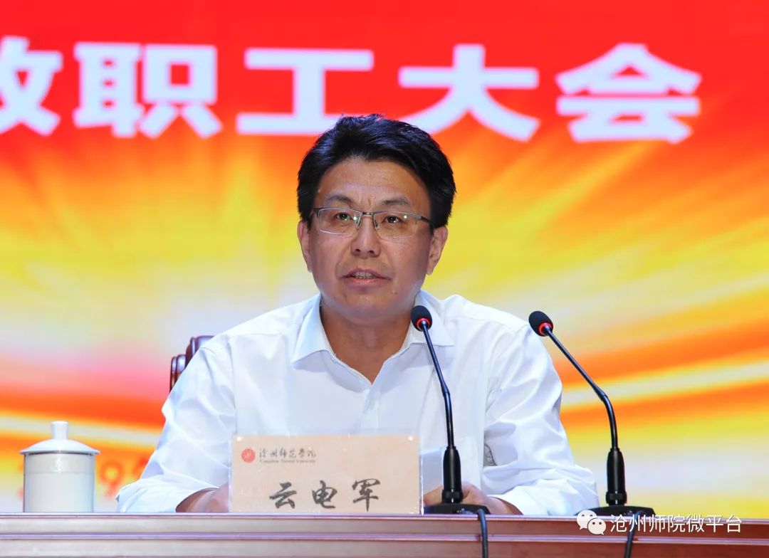 大会上,云电军、张占平向全校教职工送上慰问与祝福。