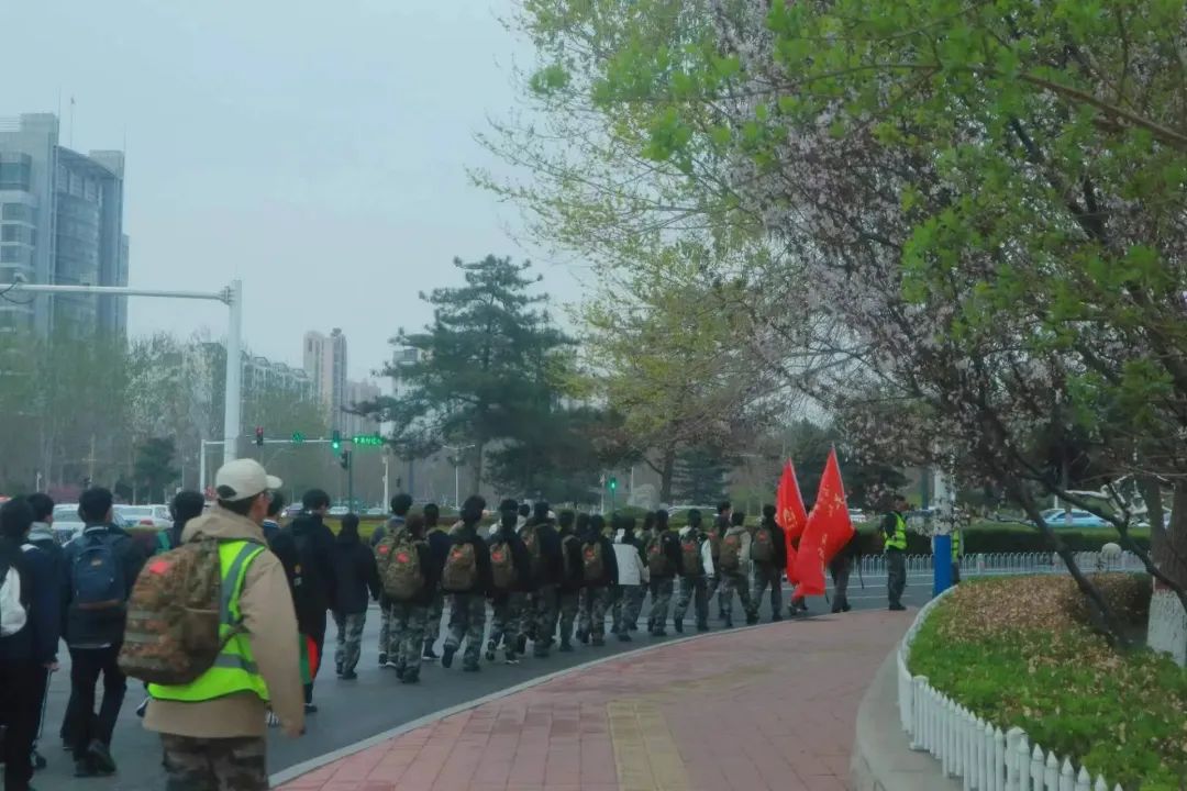 志从苦中砺,从学校出发,到达烈士陵园,沿途约8公里。此次徒步过程中,有六位警戒保障道路通畅以及部队的行进安全。后备营成员在六位警戒的指挥下步伐整齐划一,井然有序地向烈士陵园进发。沿途高歌红色曲目,激昂旋律回荡空中。