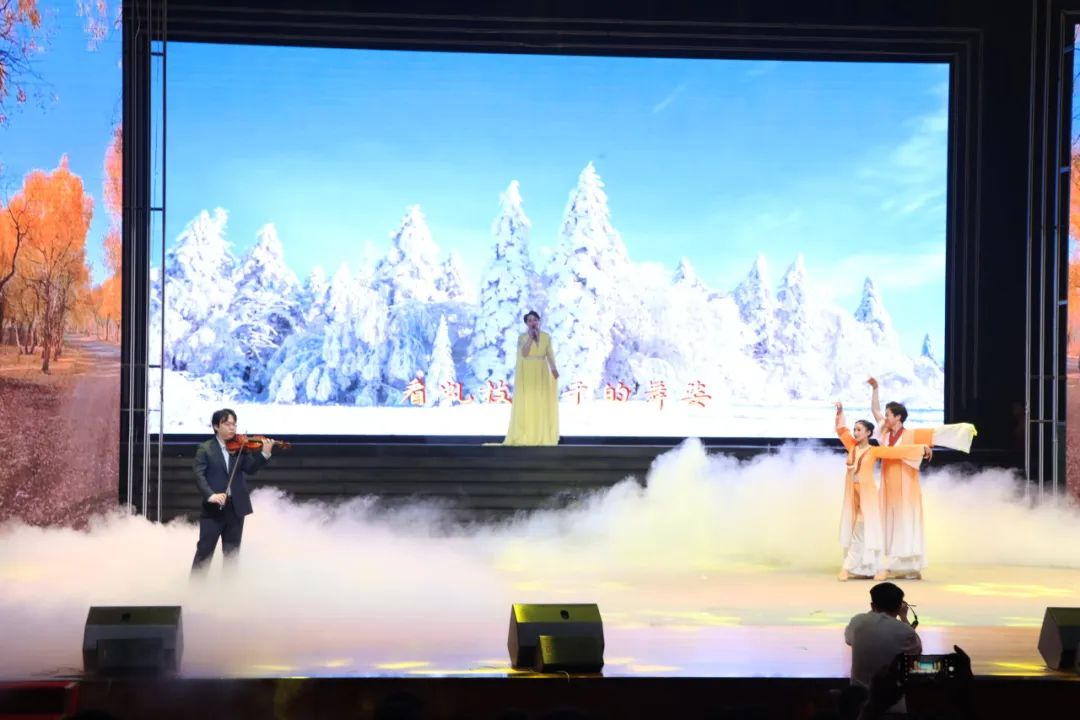 在大合唱《青青的地方》的歌声中,音乐会拉开帷幕。《塔里木河》这首脍炙人口的歌曲曾让郭玉华教授对新疆塔里木河充满向往,指导学生援疆支教,途经河畔时,他曾兴奋下车,纵情高歌。《幸福轮台杏花海 》是援疆人向您发出的幸福邀约,《用真情描绘大漠的壮阔》用师院人听得懂的音乐语言,讲述了雷竞技官网援疆支教的故事,《胡杨礼赞》唱出了胡杨坚贞不屈,千年不死、千年不倒、千年不朽的精神,《我在胡杨林你在哪》是对志同道合者的深情召唤。