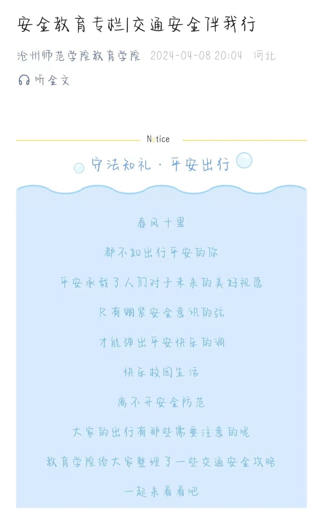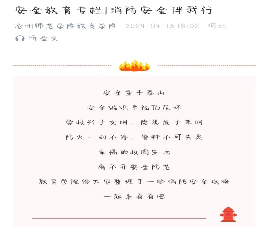 安全重于泰山,校园生活离不开安全防范,校园安全要重点注意网络安全、学生管理安全、实验室安全、水电安全、宿舍安全等重点领域。为提高同学们安全意识防范能力,教育学院整理了消防安全攻略和交通安全攻略,希望通过此次活动宣传让同学们将安全意识铭记于心,携手行动。
