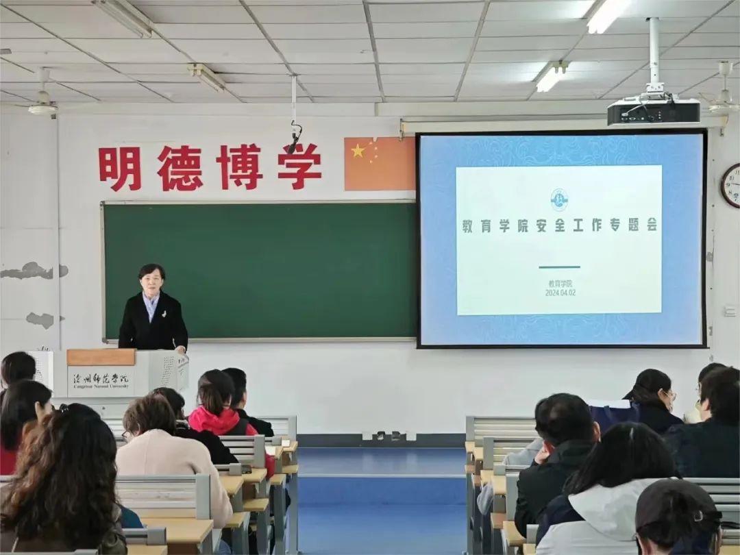 4月2日下午,教育学院召开安全工作专题会。本次会议由教育学院党总支书记金晓雪主讲,院长苟增强,副院长邢莉莉、刘梅、阎锦婷以及全体教师参加此次会议。金晓雪表示,全体教师要深刻认识到安全工作的重要性,将安全作为首要任务,保持敏锐,针对重点难点问题,加强跟踪整治,加大专项整治攻坚力度,在日常工作细微之处发现问题,并通过此次会议及后续相关工作的开展,为师生营造出一个安全和谐的学习和生活环境。