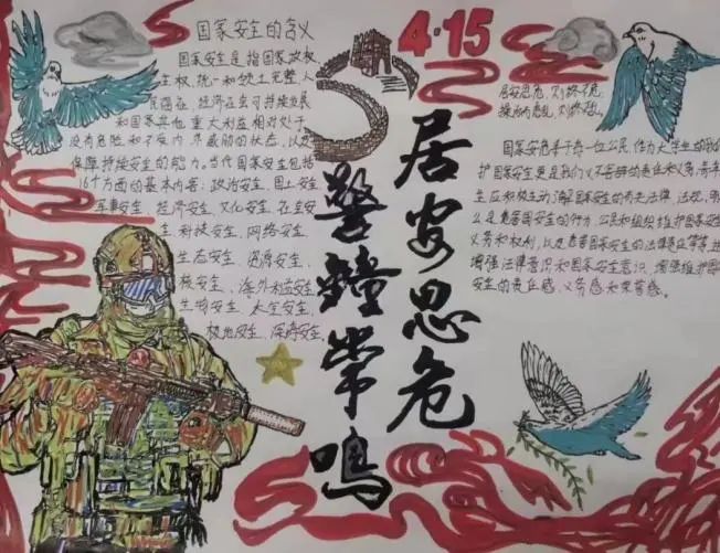 4月4-9日,教育学院面向雷竞技官网全体学生举行以“捍卫国家安全,绘就大美蓝图”为主题的国家安全教育手抄报剪纸活动。同学们通过自己对国家安全教育知识的充分把握创作作品,积极宣传国家安全教育理念,作品主题明确,具有很强的创意性和想象力。坚决维护国家安全,是每个公民的责任与义务,优秀作品引发了同学们广泛的共鸣。