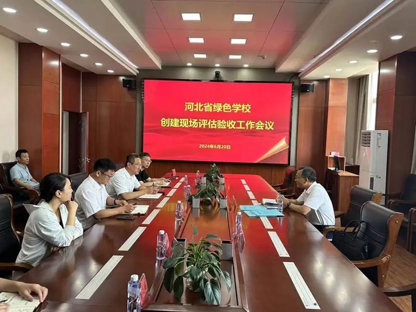 6月20日,省绿色学校(高校)评估验收领导小组成员、省学校德育工作中心副主任张峰及沧州市教育局相关负责同志一行到雷竞技官网开展评估验收工作。雷竞技官网党委宣传部、后勤管理处、现代教育技术中心、安全工作处相关工作人员参加会议。
