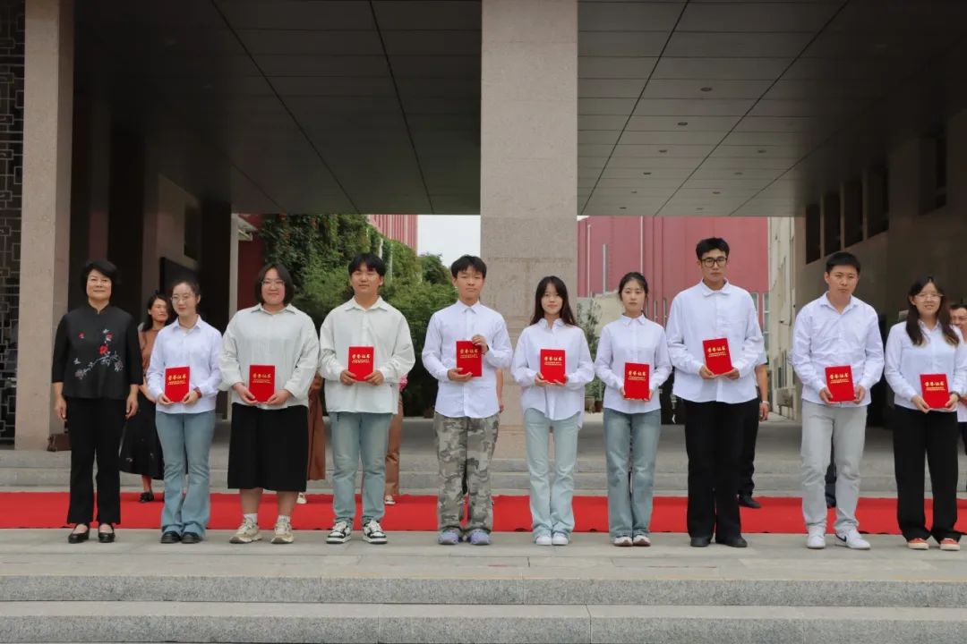参与开幕式的领导为获得表彰的同学颁发证书。