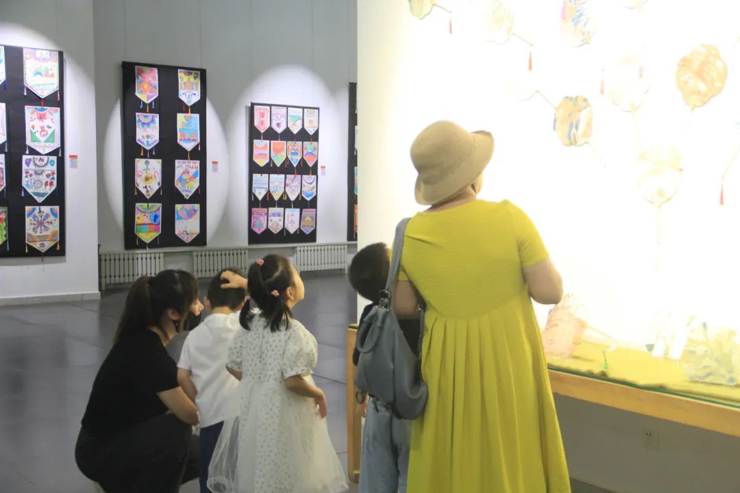 开幕式结束后,参与活动的干部师生及幼儿和家长来到洪昌美术馆参观。