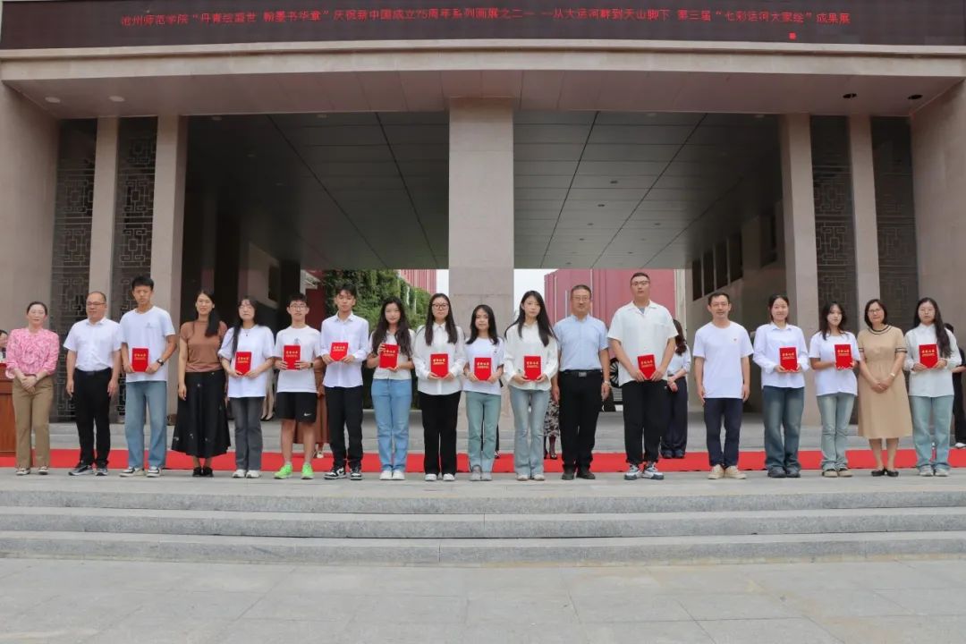 高颖宣布画展开幕并致辞。致辞表示,“七彩运河大家绘”实践项目在学校团委指导下,美术学院师生共同参与,充分挖掘校内优质教学资源,坚持“引进来”和“走出去”相结合的思路,以运河文脉为基础,面向社会开展美育推广服务,师生们带着精心准备的美育活动走进幼儿园、中小学、社区、农村,深受喜爱和好评。从沧州到新疆,从大运河走到塔里木河,将美丽的运河文化传承、传播,为民族团结、文化润疆贡献一份力量。今后,我们将继续以习近平新时代中国特色社会主义思想为指导,全面贯彻党的教育方针,以立德树人为根本,以社会主义核心价值观为引领,以提高学生审美和人文素养为目标, 把美育纳入学校人才培养全过程。不断深化美育教学改革,营造美育文化氛围,提升服务社会能力。