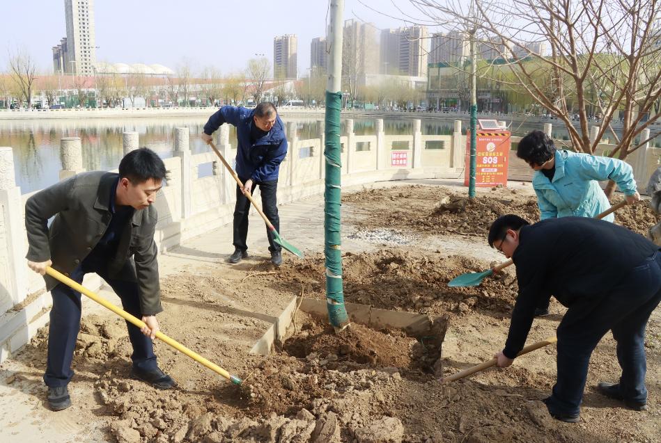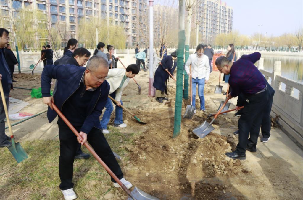 今年是开展全民义务植树运动44周年,3月12日我国第47个植树节,值此之际,党委书记云电军、校长张占平带领校领导班子成员及各行政处室中层干部开展义务植树活动,以实际行动深入学习贯彻习近平生态文明思想,践行绿色发展理念,为校园再添新绿。
