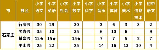 (注:小学特设岗位需求中带“★”号者,根据设岗县岗位学历要求只招收本科及以上学历)