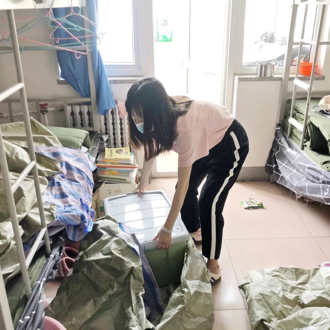 学院书记、院长、志愿服务的党员老师们亲自上阵,在宿舍中帮助返校生打包行李、整理物品等。与不能及时返校的同学进行视频对话,一一核对物品,细致入微,小心包裹,不遗漏、不损坏一件学生们的“宝贝”。