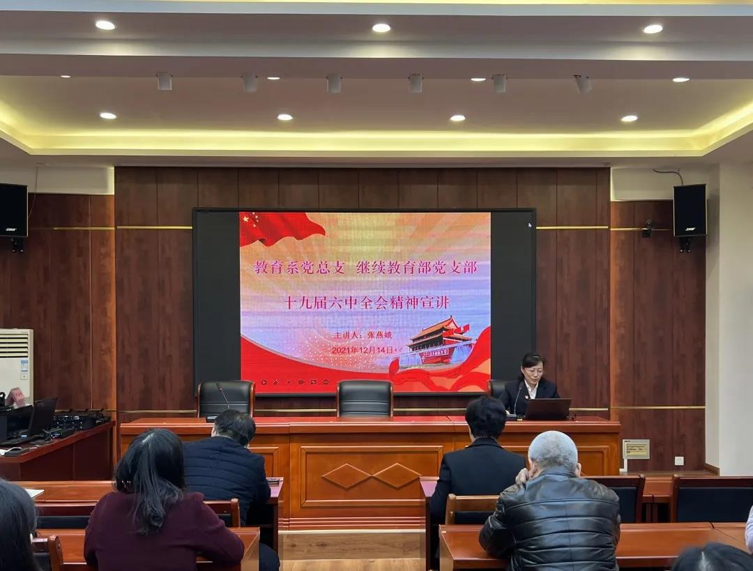 12月14日,马克思主义学院副教授张燕娥为教育学院党总支、继续教育部党支部进行十九届六中全会精神宣讲,教育学院党总支、继续教育部党支部全体教师到场聆听,教育学院党总支书记金晓雪主持会议。