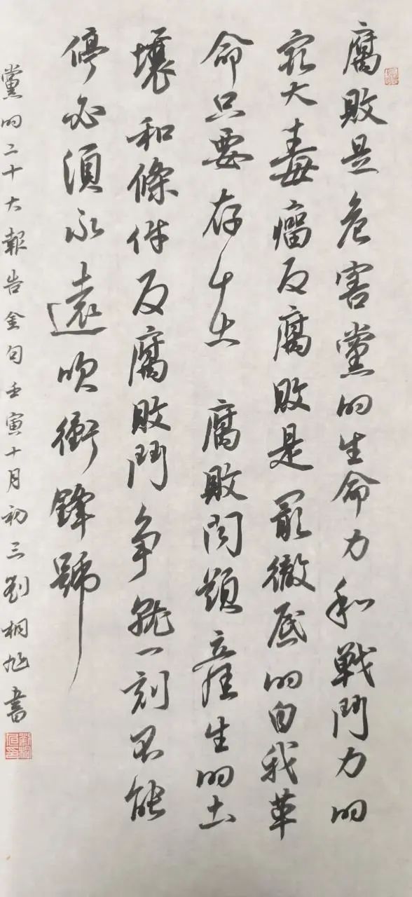 此次书法专业的学生把党的二十大报告金句以书法的形式集中展现出来,也是文学院组织学生积极宣传党的二十大精神的生动实践。