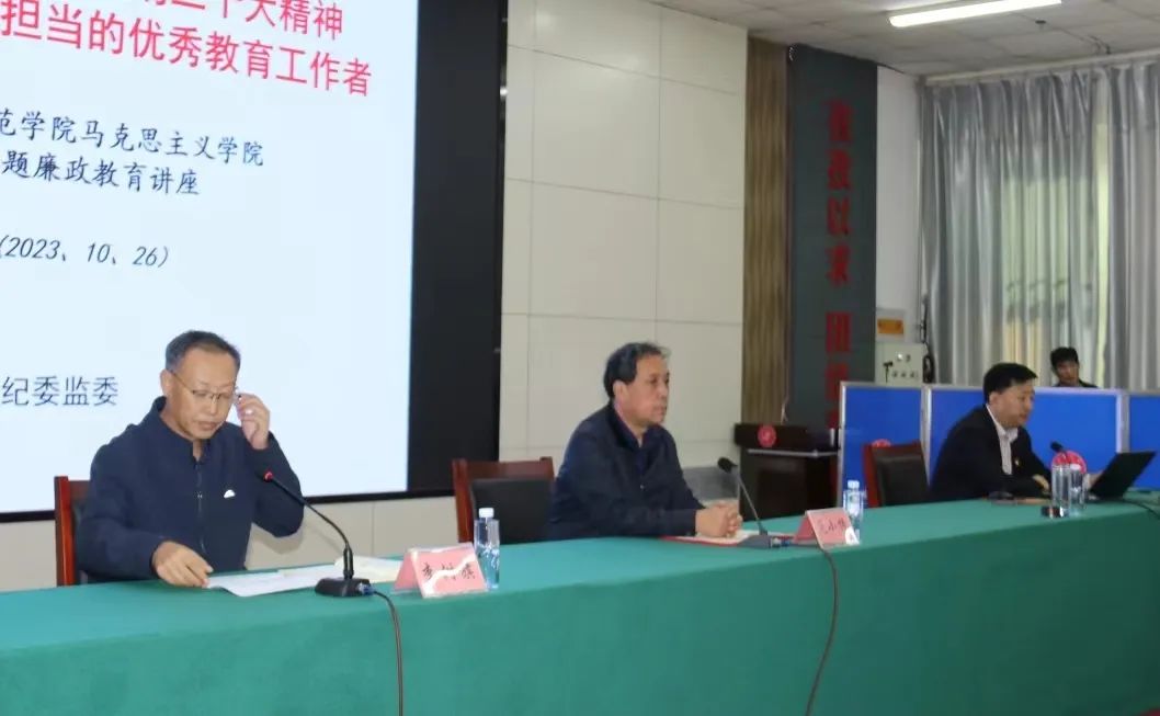 为进一步推进学习贯彻习近平新时代中国特色社会主义思想主题教育,宣传党的二十大精神,认真贯彻落实党中央对党风廉政建设和反腐败工作的新要求,深入推进全面从严治党,增强马克思主义学院师生的廉洁自律意识,10月26日,马克思主义学院特邀全国职务犯罪预防专家、沧州市纪委监委驻沧州市中级人民法院纪检监察组组长南宝新在学术报告厅做“认真学习贯彻党的二十大精神,做忠诚干净担当的优秀教育工作者”专题讲座。雷竞技官网党委常委、副校长范小振出席。
