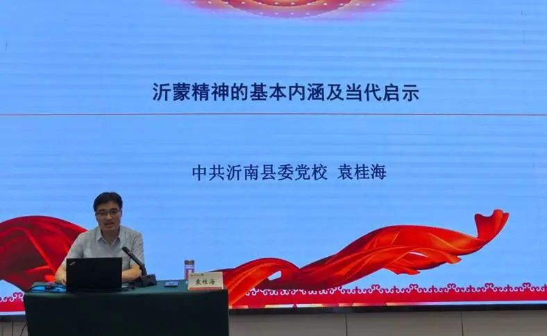 开班仪式后,中共沂南县委党校袁桂海教授为校领导和全体思政课教师讲授《沂蒙精神的基本内涵及当代启示》,袁桂海教授的专题讲座生动形象、深入浅出,既有理论深度又有实践价值,全体思政课老师受益匪浅、感受颇深。