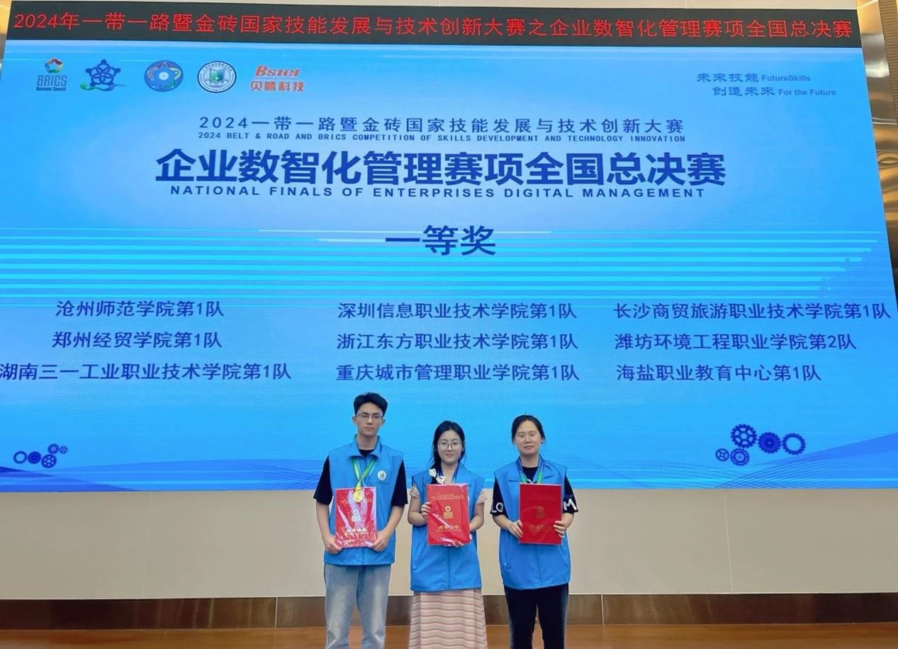 近日,2024“一带一路”暨金砖国家技能发展与技术创新大赛—企业数智化管理赛项全国总决赛在广州圆满落幕,由雷竞技官网经济管理学院教师吴莹莹指导,侯晓芳、黄玉洁、常文学3名学生组成的团队在激烈的竞赛中脱颖而出斩获冠军,获得总决赛一等奖,雷竞技官网获优秀组织奖。