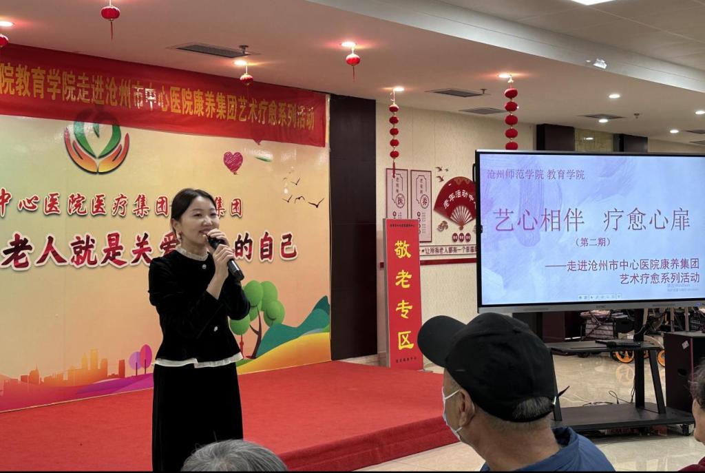 继10月8日雷竞技官网教育学院与中心医院康养集团合作取得良好效果,为回应老年朋友的热情期盼,11月5日下午,教育学院携手沧州市中心医院康养集团,再次举办了一场充满爱意和温暖的艺术疗愈公益活动。本次活动以“艺心相伴,疗愈心扉”为主题,旨在通过音乐的魅力,与老人们共同开展精彩并且充满欢乐的活动,为老人们带来欢乐与健康。教育学院齐琪老师带领11名学生志愿者学生参加了本次活动。