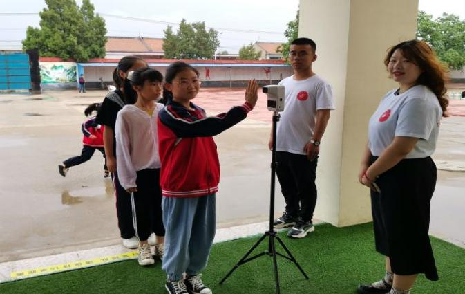 看护学生排队体温检测入校