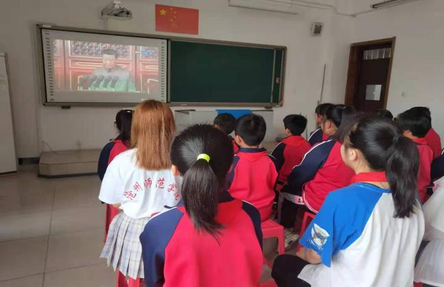 与学校学生代表和老师一起观看庆祝建党100周年大会
