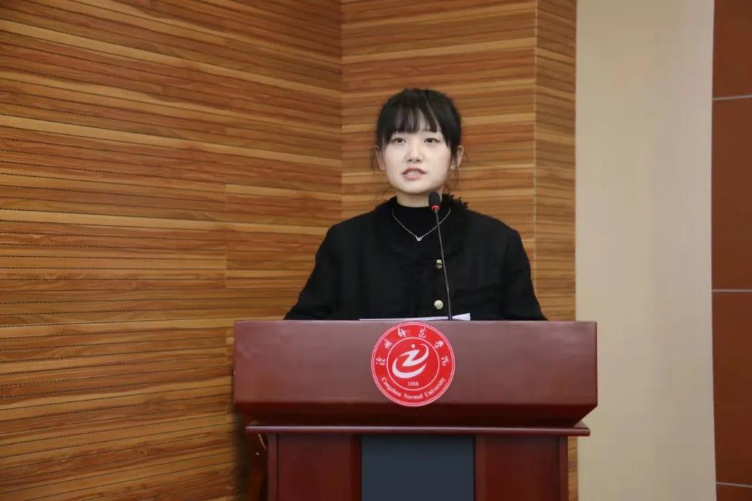 往届参训学员、优秀青年教师代表杨方玲作交流发言,新入职教师代表武姗姗作表态发言。