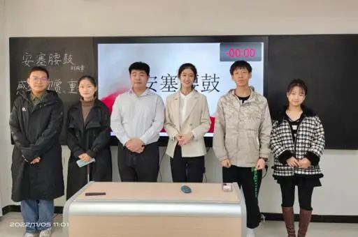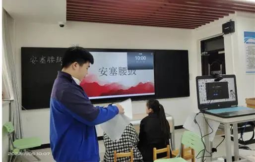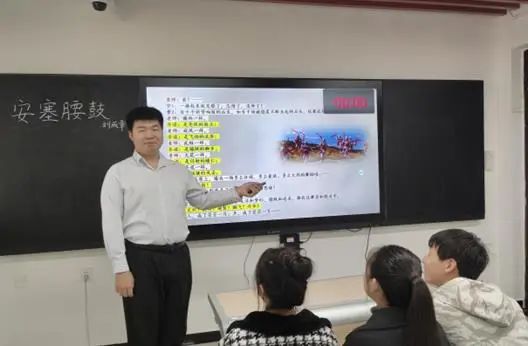 那是一段充实而快乐的时光,王欣艳老师为我们奔波,选择智慧教室作为比赛场地进行调试。王祎嘉同学每天催我起床和我一同去教室排练,还有我亲爱的同学们,热情地配合我的比赛。我站在智慧教室133的讲台面前,一遍遍调试和重复讲课的稿子,完善着每一处细节。好像这小小的教室里,回荡着我和我的同学们放声朗读的“安塞腰鼓”四个字,又好像汇合了学校里结伴而行的同学的谈笑声,静心湖天鹅的叫声,风吹过落叶飘落的声音,这是“多么壮阔、多么豪放、多么火烈”的舞蹈啊。
