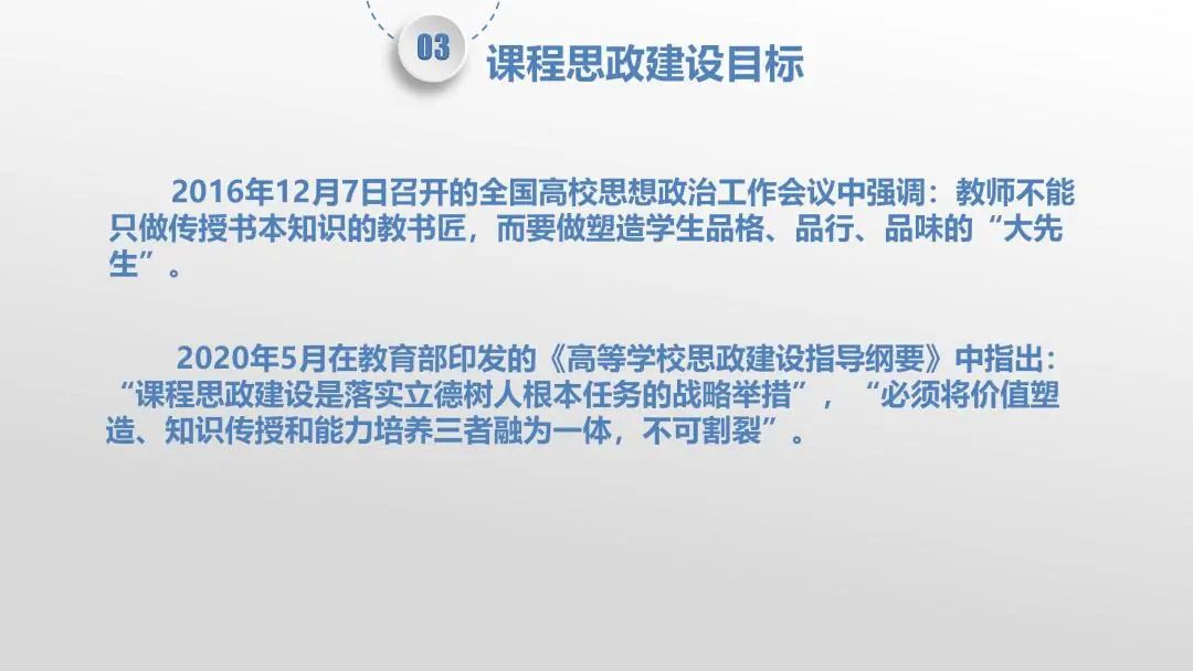 2022年上半年,雷竞技官网开展了雷竞技ray官网第二批课程思政示范课程申报工作。经各二级学院推荐、校内外专家严格评审,最终评选出第二批课程思政示范课程40门,课程思政建设课程12门。为及时总结经验,发掘典型做法,持续深入抓示范、树标杆,推动形成全面覆盖、类型丰富、层次递进、相互支撑的课程思政内容体系、教学体系、专业体系、培养体系、研究体系和评价体系,进一步巩固课程思政建设成果,方便老师们学习、交流,现将第二批课程思政示范课程说课课件分期进行刊发。