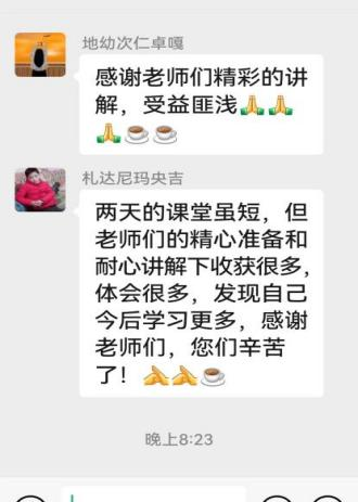 本次培训学员数量多,培训成果显著。学员们纷纷表示,这次培训让他们受益匪浅,不仅弄清了自己语音中存在的系统问题,提升了普通话能力,也学习到了很多语音知识和许多诵读教学方法。学员索南拉姆说,“感谢河北援藏给我们创建的学习平台!感谢专家们细心耐心的授课!遥祝沧州的老师们扎西德勒!”;学员札达尼玛央吉表示:“两天的学习虽短,但老师们的精心准备和耐心讲解让我收获很多,体会很多,感谢老师们!”