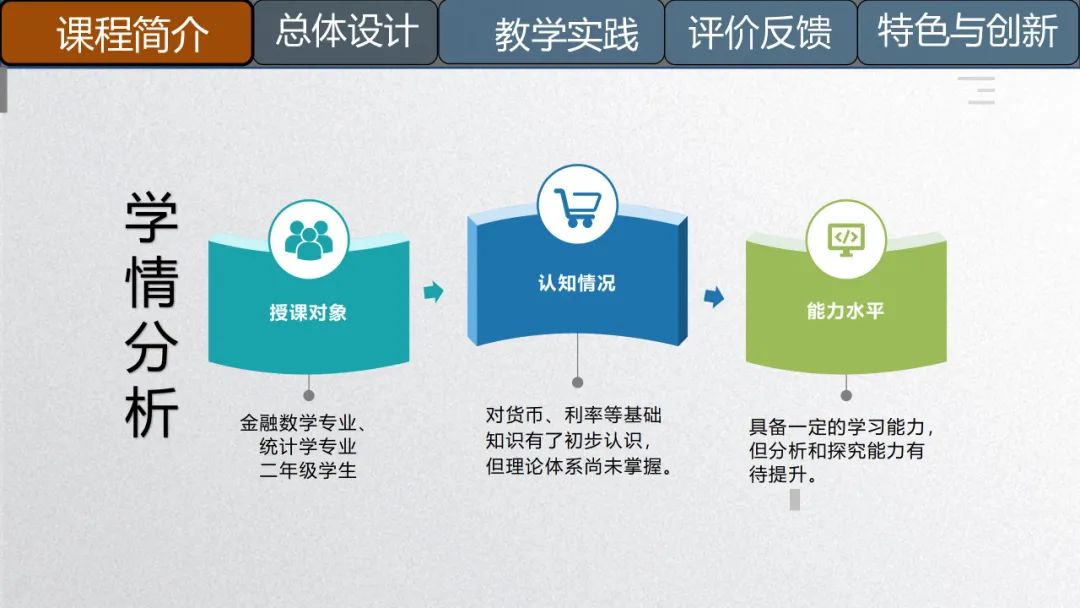 2022年上半年,雷竞技官网开展了雷竞技ray官网第二批课程思政示范课程申报工作。经各二级学院推荐、校内外专家严格评审,最终评选出第二批课程思政示范课程40门,课程思政建设课程12门。为及时总结经验,发掘典型做法,持续深入抓示范、树标杆,推动形成全面覆盖、类型丰富、层次递进、相互支撑的课程思政内容体系、教学体系、专业体系、培养体系、研究体系和评价体系,进一步巩固课程思政建设成果,方便老师们学习、交流,现将第二批课程思政示范课程说课课件分期进行刊发。