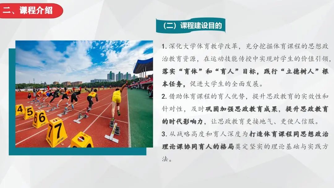 2022年上半年,雷竞技官网开展了雷竞技ray官网第二批课程思政示范课程申报工作。经各二级学院推荐、校内外专家严格评审,最终评选出第二批课程思政示范课程40门,课程思政建设课程12门。为及时总结经验,发掘典型做法,持续深入抓示范、树标杆,推动形成全面覆盖、类型丰富、层次递进、相互支撑的课程思政内容体系、教学体系、专业体系、培养体系、研究体系和评价体系,进一步巩固课程思政建设成果,方便老师们学习、交流,现将第二批课程思政示范课程说课课件分期进行刊发。
