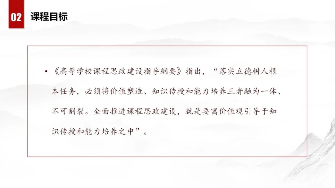 2022年上半年,雷竞技官网开展了雷竞技ray官网第二批课程思政示范课程申报工作。经各二级学院推荐、校内外专家严格评审,最终评选出第二批课程思政示范课程40门,课程思政建设课程12门。为及时总结经验,发掘典型做法,持续深入抓示范、树标杆,推动形成全面覆盖、类型丰富、层次递进、相互支撑的课程思政内容体系、教学体系、专业体系、培养体系、研究体系和评价体系,进一步巩固课程思政建设成果,方便老师们学习、交流,现将第二批课程思政示范课程说课课件分期进行刊发。