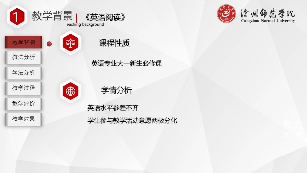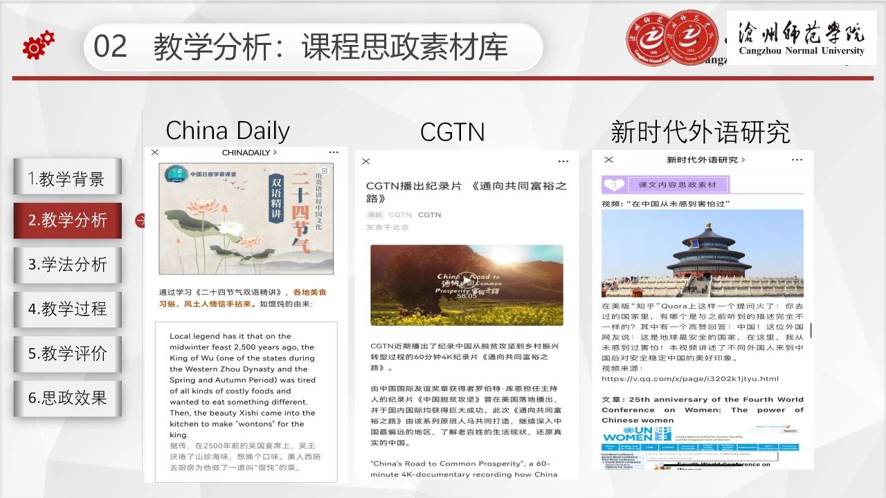 2022年上半年,雷竞技官网开展了雷竞技ray官网第二批课程思政示范课程申报工作。经各二级学院推荐、校内外专家严格评审,最终评选出第二批课程思政示范课程40门,课程思政建设课程12门。为及时总结经验,发掘典型做法,持续深入抓示范、树标杆,推动形成全面覆盖、类型丰富、层次递进、相互支撑的课程思政内容体系、教学体系、专业体系、培养体系、研究体系和评价体系,进一步巩固课程思政建设成果,方便老师们学习、交流,现将第二批课程思政示范课程说课课件分期进行刊发。