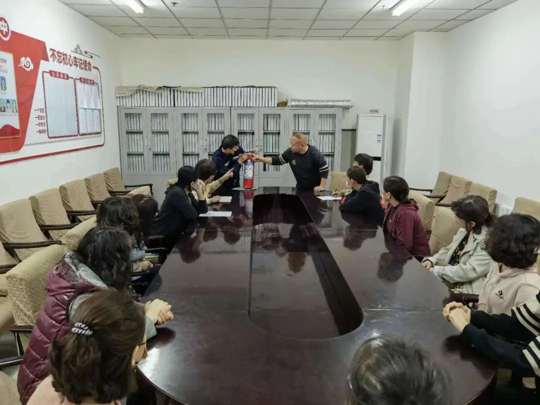 安全工作处苑树友和维保人员李保祥对火灾发生的原因、怎样预防火灾、灭火器材的种类及使用方法等进行了详细讲解。