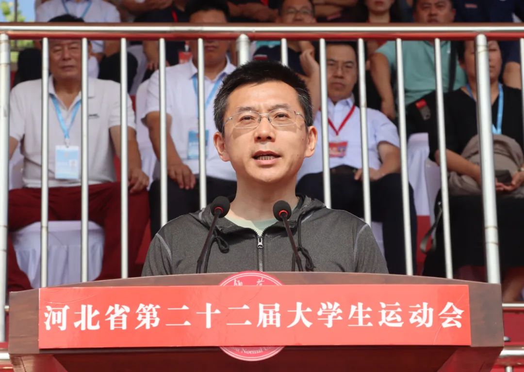 张春生致开幕词,他代表河北省教育厅和大会组委会,对本次比赛的胜利举行表示祝贺,对雷竞技ray官网党政领导的重视支持和师生员工的辛勤工作表示感谢,对全体运动员、教练员、裁判员、领队和各位来宾朋友们表示欢迎。他表示,在习近平总书记关于教育的重要论述指导下,河北省坚持把大学生体育事业作为推动高等教育高质量发展的重要内容,作为提高大学生健康水平的重要途径,把体育作为“五育并举”全面发展的基础,同其他工作一道,精心谋划、狠抓落实,推动全省高等教育事业大踏步前进。本届大运会的胜利举办,既是对我省高校体育的全面检阅,也是推动教育强国、人才强国、体育强国的生动实践。全体参会人员要共同努力,将本次大运会办成释放热情、传播激情的体育盛会,办成超越胜败、深化友谊的体育盛会,办成传承精神、凝聚人心的体育盛会。