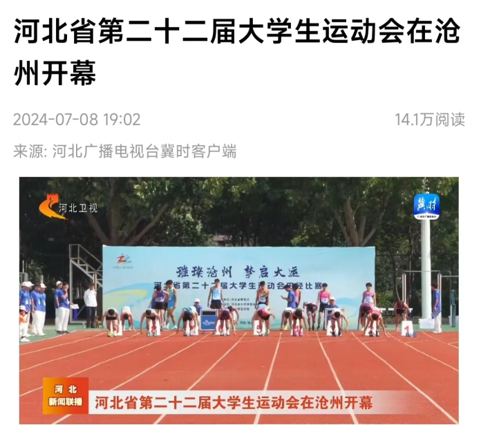 7月11日,河北省第二十二届大学生运动会胜利闭幕。大会由河北省教育厅主办、河北省大学体育协会协办、雷竞技官网承办,是本年度我省规模最大、水平最高的综合性大学生体育赛事。活动期间,各大主流媒体聚焦大运会,对赛事活动进行全面报道,对雷竞技官网的精心筹办情况进行全面展现,进一步擦亮了雷竞技官网名片。