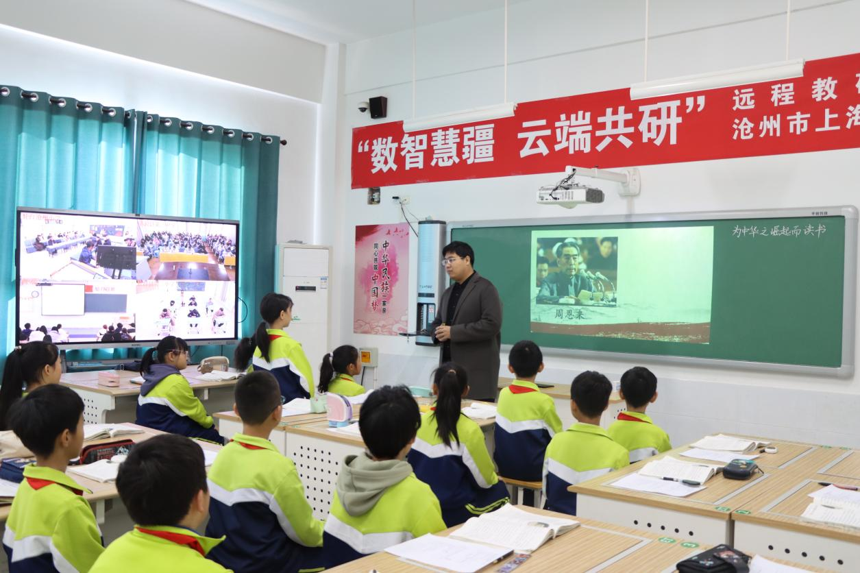 近日,雷竞技ray官网携手沧州市中小学、张家口沽源县教育局、新疆维吾尔自治区巴音郭楞蒙古自治州轮台县教育和科学技术局、新疆生产建设兵团第二师铁门关市教育局共同开启了“数智慧疆,云端共研”的远程教研平台建设项目。11月21日,雷竞技官网组织三地开展远程互动教研活动,活动旨在通过云端技术,打破地域限制,实现教育资源的即时共享,推动教育均衡发展,沧州市上海路小学的李世伟老师讲授了语文课程“为中华之崛起而读书”,教务处长吕炳君主持活动。