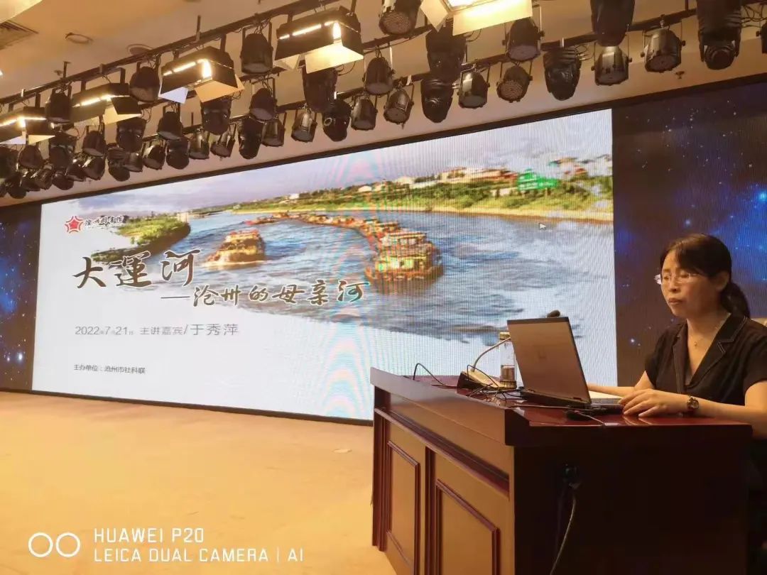 习近平总书记曾说:“大运河是祖先留给我们的宝贵遗产,是流动的文化,要统筹保护好、传承好、利用好。”为贯彻落实总书记对建设大运河文化带以及宣传大运河文化带思想的重要指示精神,7月21日,政史学院于秀萍教授在沧州图书馆报告厅作了“从永济渠到南运河——大运河于沧州区域社会的变迁”主题讲座。