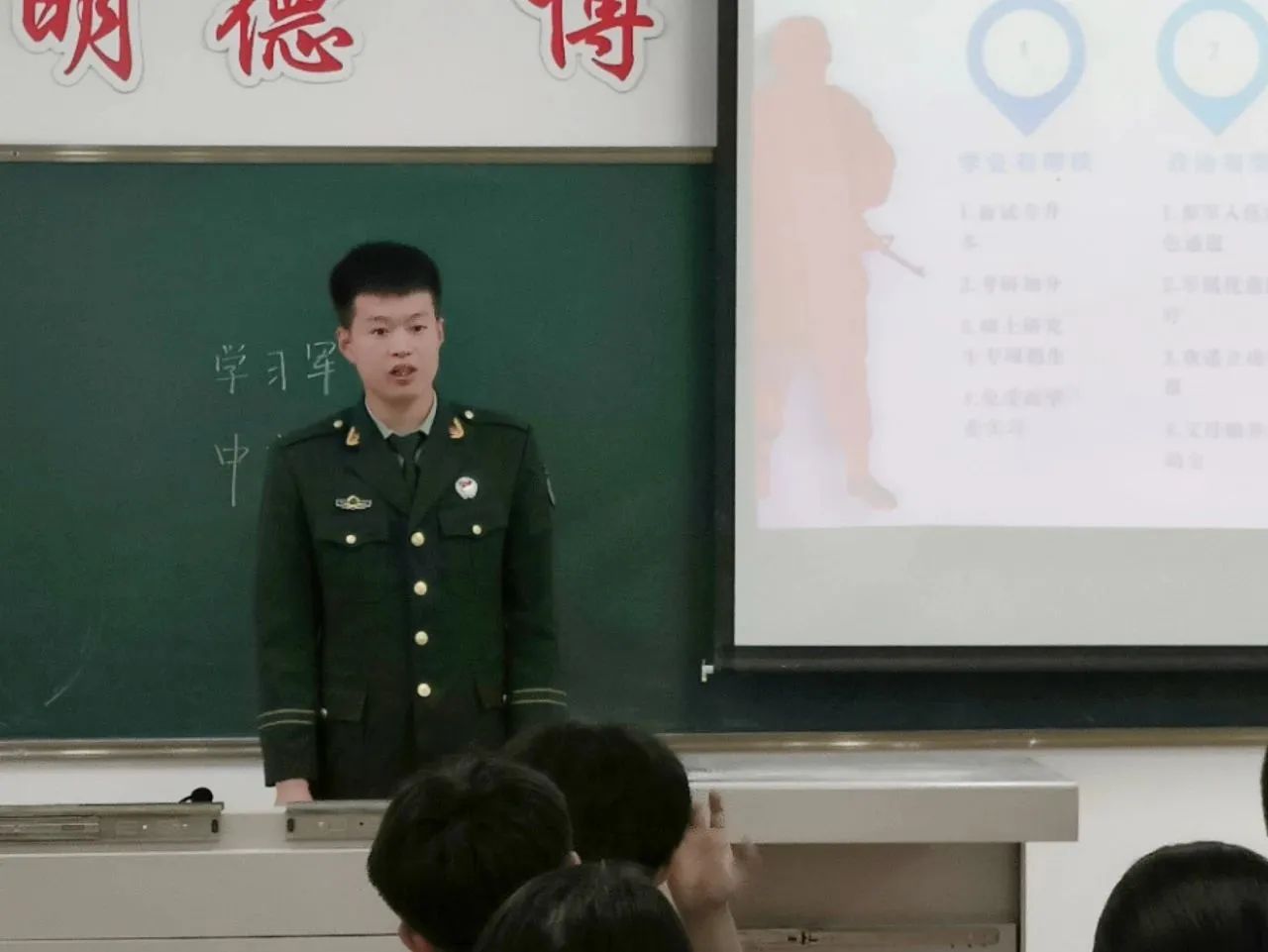 参军励志宣讲邀请文学院退役大学生士兵刘佳月、孙猛超、杨翔云开展宣讲活动,他们结合亲身经历展现军营生活的点点滴滴,深情感恩军旅生涯带给个人的淬炼和成长。宣讲最后,他们详细分析了征兵形势,解读了征兵政策,鼓励大家投身军营献身国防,改变人生底色,实现个人价值与家国情怀。