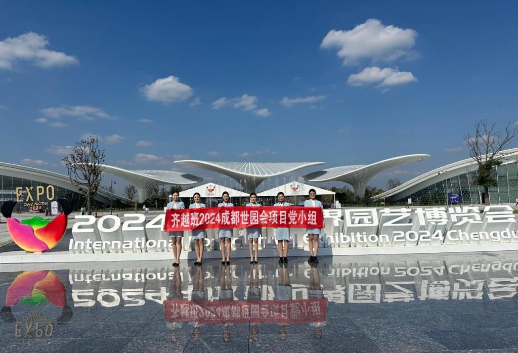 秋高气肃,金风送爽,桂子飘香。10月28日,历时186天的中国(成都)世界园艺博览会圆满落下帷幕,齐越传媒学院播音与主持艺术专业的张龙萱、乔斯然、暴芯畅、宿安琪、武迪晨、丁天瑜等6名同学身着天蓝色套装,以精致的妆容、整齐的装束集体亮相成都世园会闭幕式会场,生动展示出讲解员端庄雅丽的形象,高质量完成讲解接待工作,成为2024年中国(成都)世界园艺博览会一道亮丽的风景线。