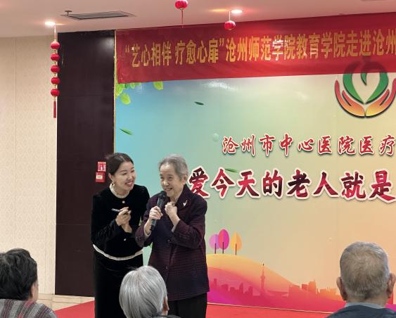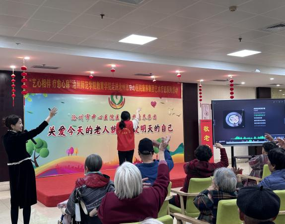 继10月8日雷竞技官网教育学院与中心医院康养集团合作取得良好效果,为回应老年朋友的热情期盼,11月5日下午,教育学院携手沧州市中心医院康养集团,再次举办了一场充满爱意和温暖的艺术疗愈公益活动。本次活动以“艺心相伴,疗愈心扉”为主题,旨在通过音乐的魅力,与老人们共同开展精彩并且充满欢乐的活动,为老人们带来欢乐与健康。教育学院齐琪老师带领11名学生志愿者学生参加了本次活动。