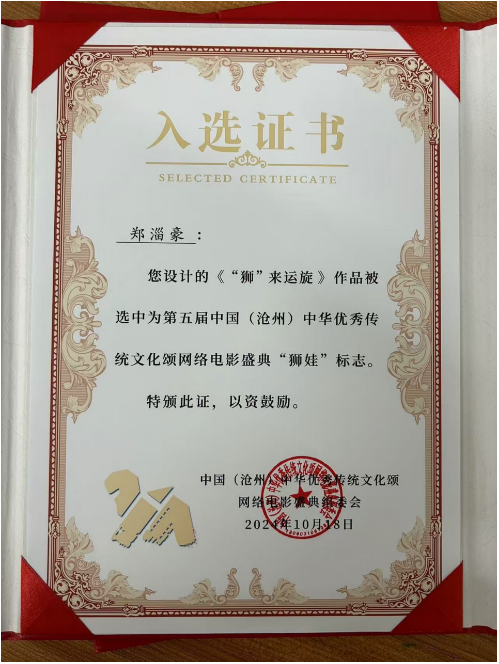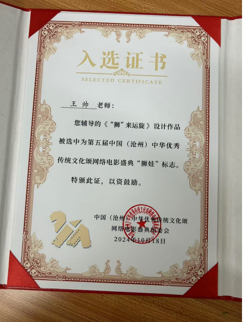近日,第五届中国(沧州)中华优秀传统文化颂网络电影盛典在我市举行,为增强盛典的特色融合感,通过吉祥物的环节将沧州独有的元素巧妙融合,让观众感受河海狮城、文武沧州的独特魅力,主办方开展了吉祥物征集活动。在美术学院教师王帅的指导下,该院视觉传达专业学生郑淄豪设计的“狮来运旋”作品成功入选。