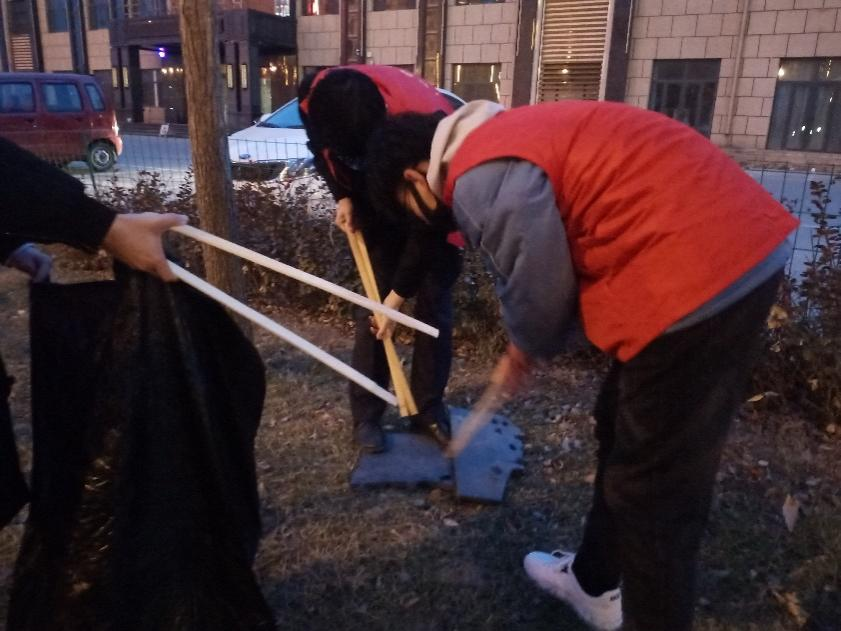 大家拿着清洁工具,捡拾道路两旁草地里的塑料袋、烟头、纸屑、塑料瓶等,不放过任何微小的垃圾,经过仔细认真地打扫后,校门口两侧环境干净整洁、焕然一新,活动在老师和同学们的共同努力下圆满结束。